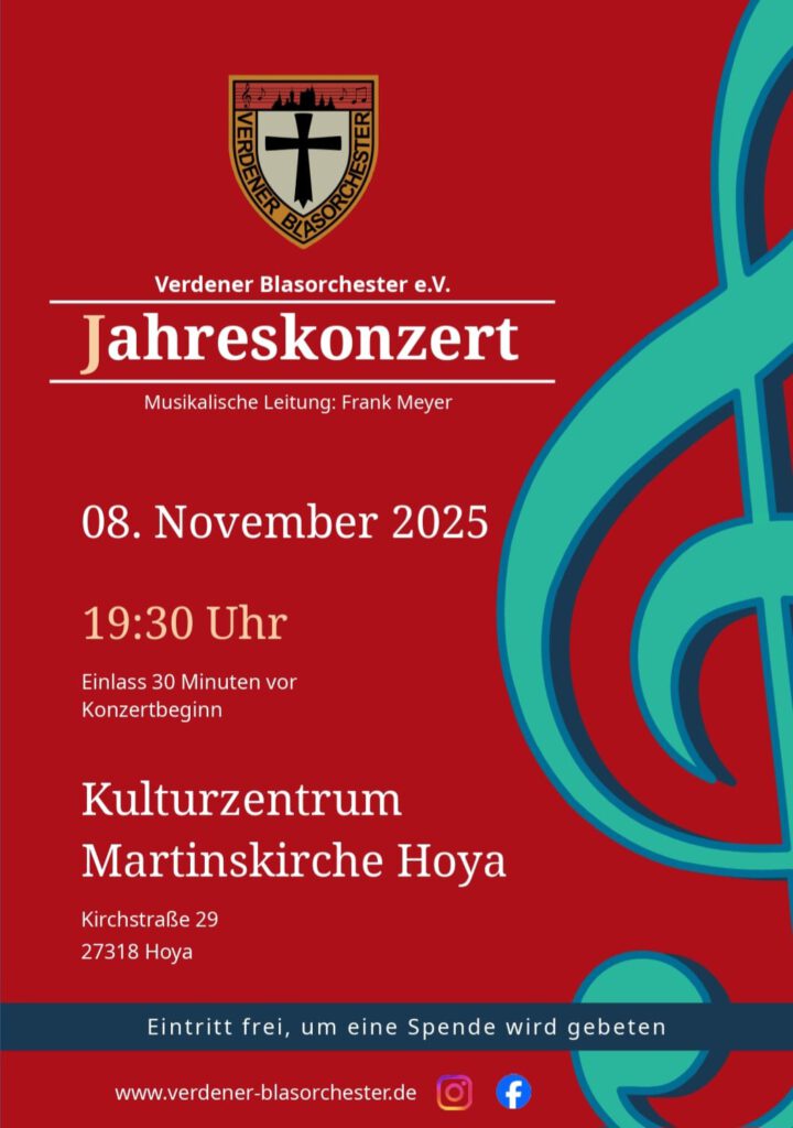 Unser nächstes größere Konzert findet am 08.11.2025 in der Martinskirche in Hoya statt